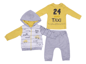 Komplet sadrži: gornji deo, bodi, donji deo. Veličina: 3-6m, 6-9m, 9-12m, 12-18m Sastav: 100% pamuk Zemlja porekla: Turska Uvoznik: “KIKKA FAMILY“ Kragujevac