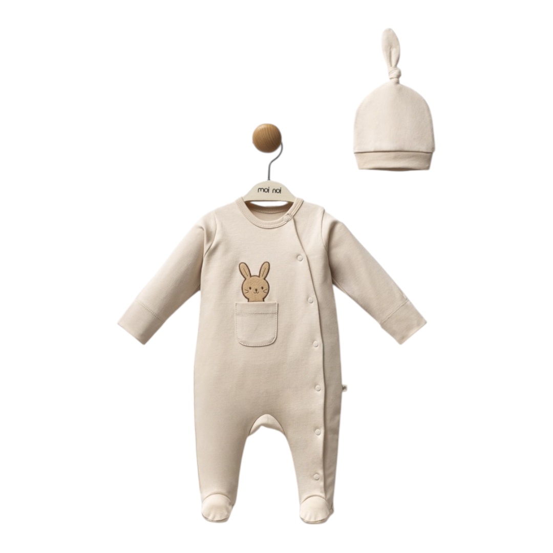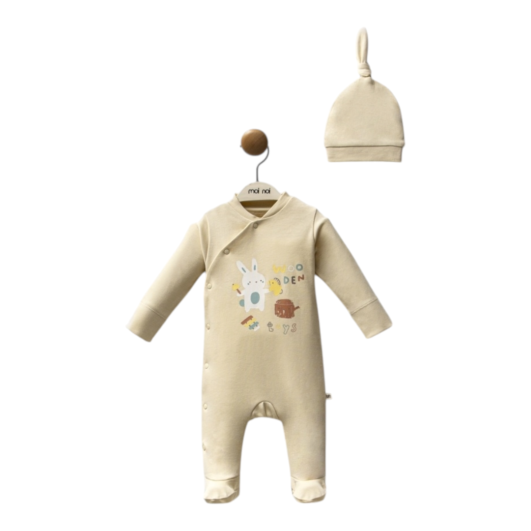 Set za bebe jednobojni, pet delova Set sadrži -gornji deo -donji deo -kapicu -portiklu -rukavice Veličina 0-3 meseca Pamuk 100% Deklaracija Zemlja porekla : Turska Uvoznik : Forma VS , Beograd