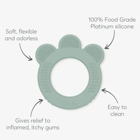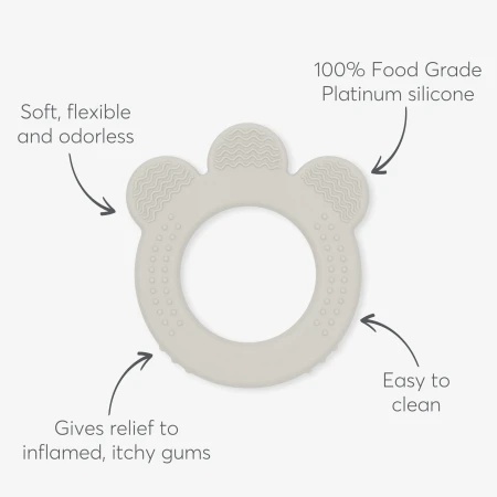 Poseduje tri različite reljefne teksture koje nežno masiraju desni i pomažu u ublažavanju svraba i nelagodnosti izazvane nicanjem zuba. Ova kombinacija tekstura dodatno podstiče senzorno istraživanje i razvoj čula dodira.