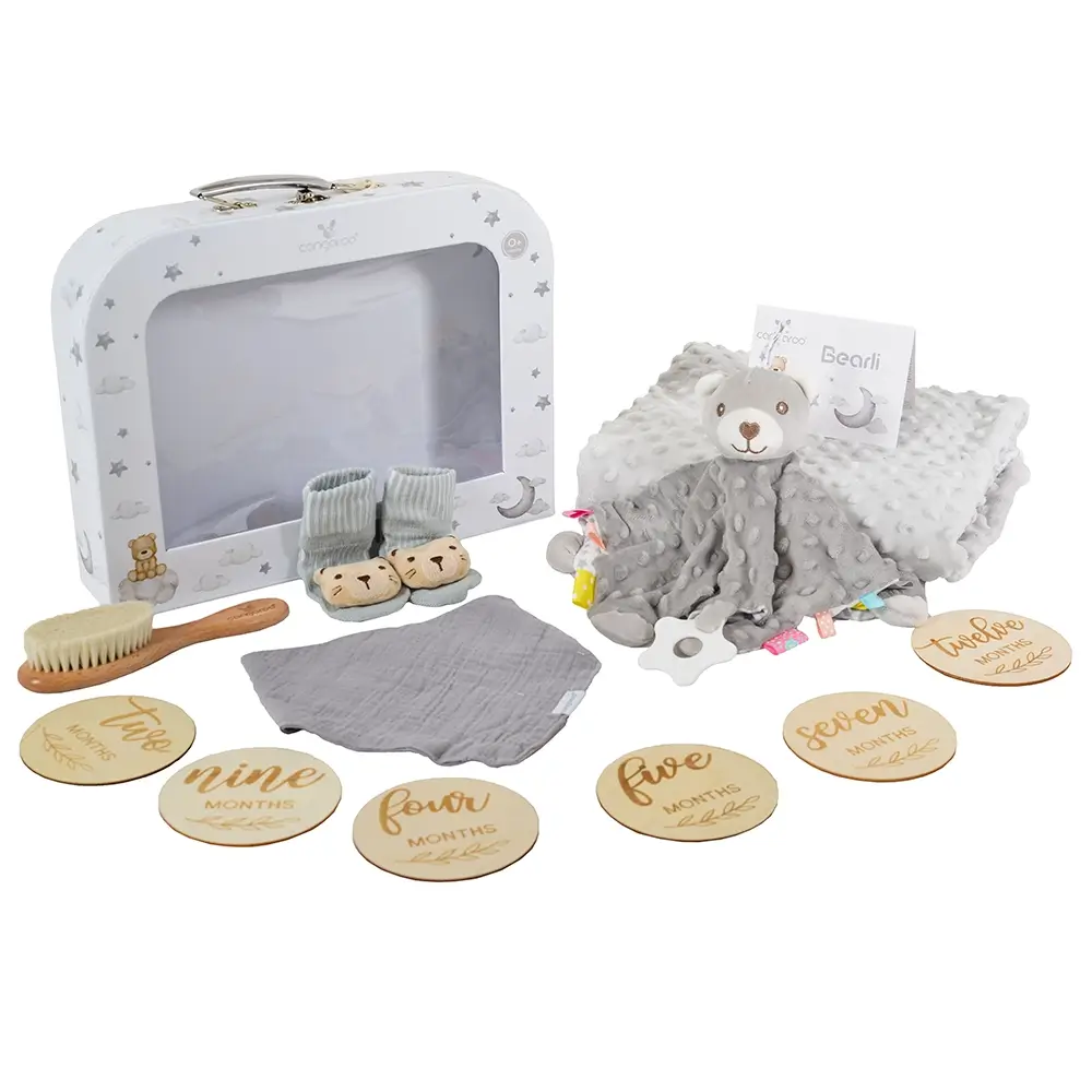 Set od šest dvostranih pločica sa oznakama od „1 mesec“ do „12 meseci“. Sjajan dodatak za mesečne fotografije i čuvanje dragocenih uspomena iz prve godine